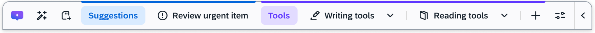 The AI-enabled Action Bar is an expanding widget that delivers proactive, in-the-flow assistance. It opens into a panel that offers a wide range of pre-built and custom AI-driven actions to support users exactly when they need it. Key features include: