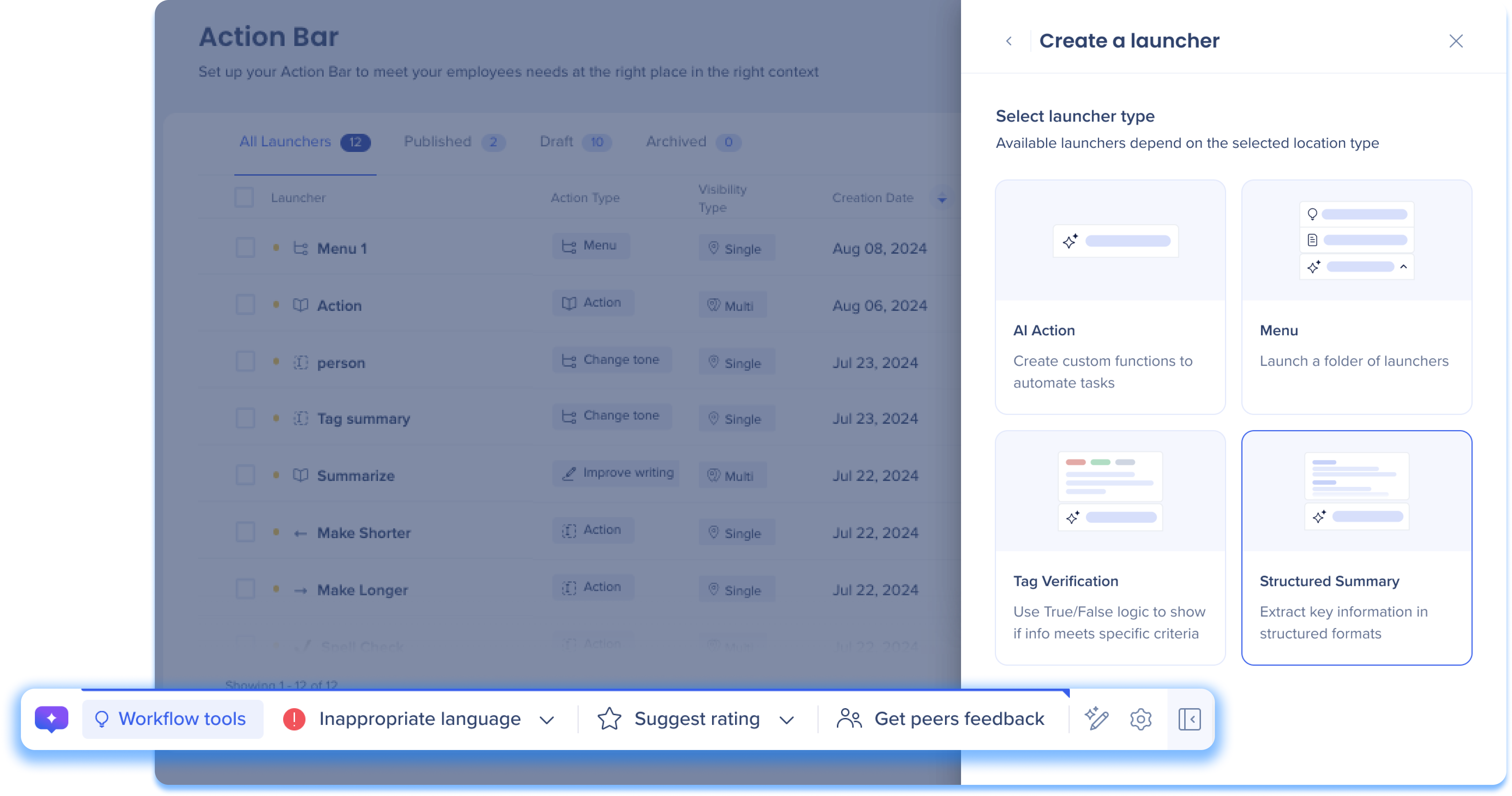 Workflows provides a catalog of tailored, customizable, pre-defined workflows designed to optimize business processes. With advanced AI capabilities, it supports planning, monitoring, and reviewing digital adoption initiatives across a broader audience.