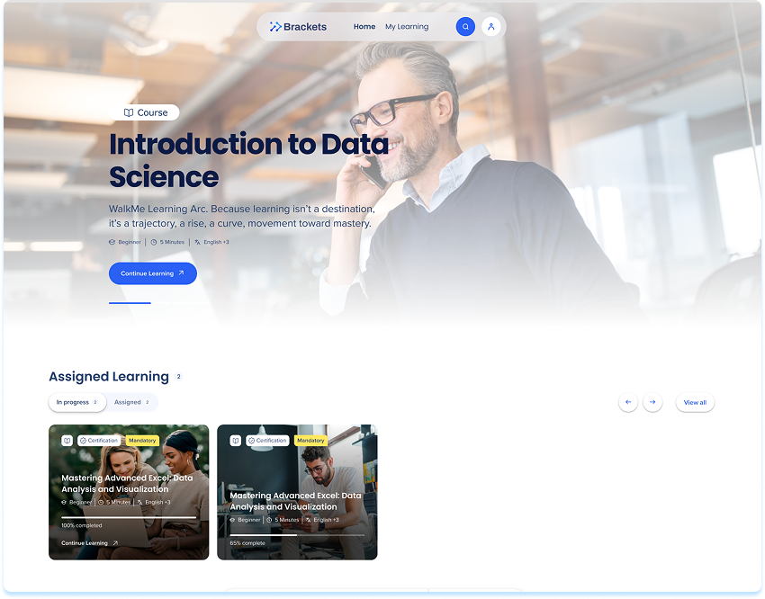 Whether it's a microlearning or a full course, the portal displays all published learning content users are eligible to see—filtered through segment rules and permissions. Built-in search and filter tools help you quickly find content that matches your goals.