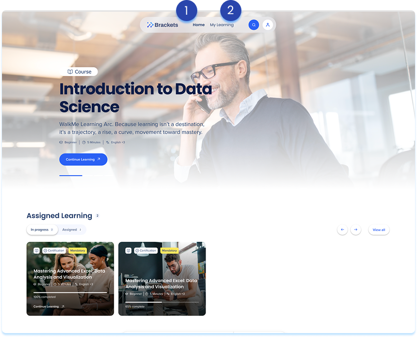 The WalkMe Learning Arc Portal includes two primary pages: