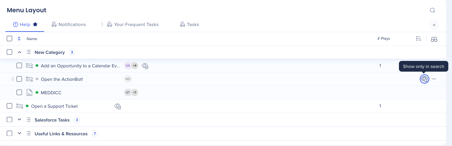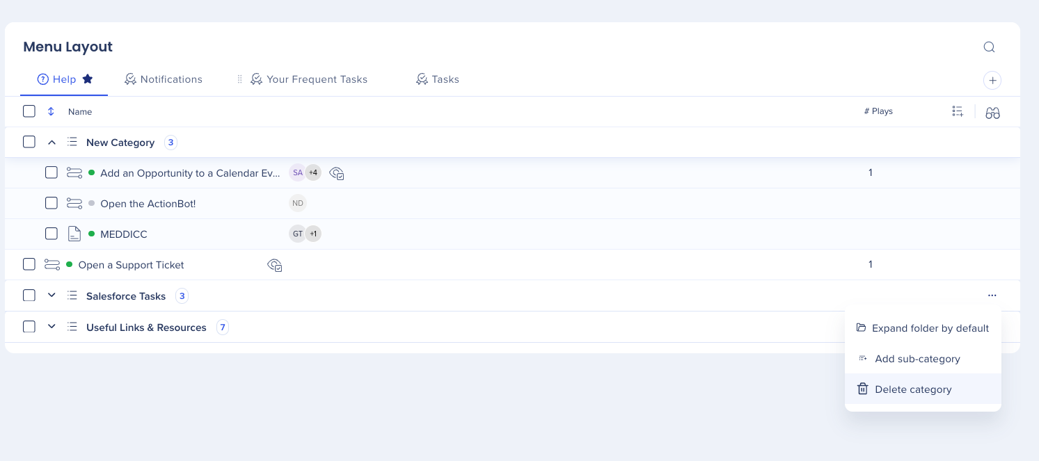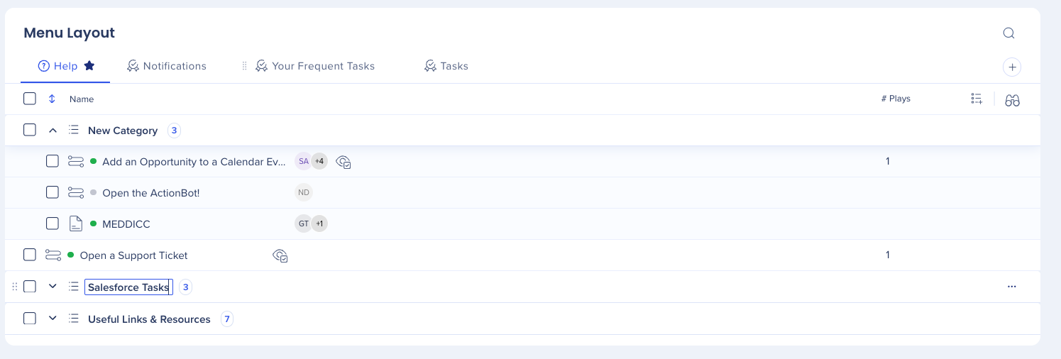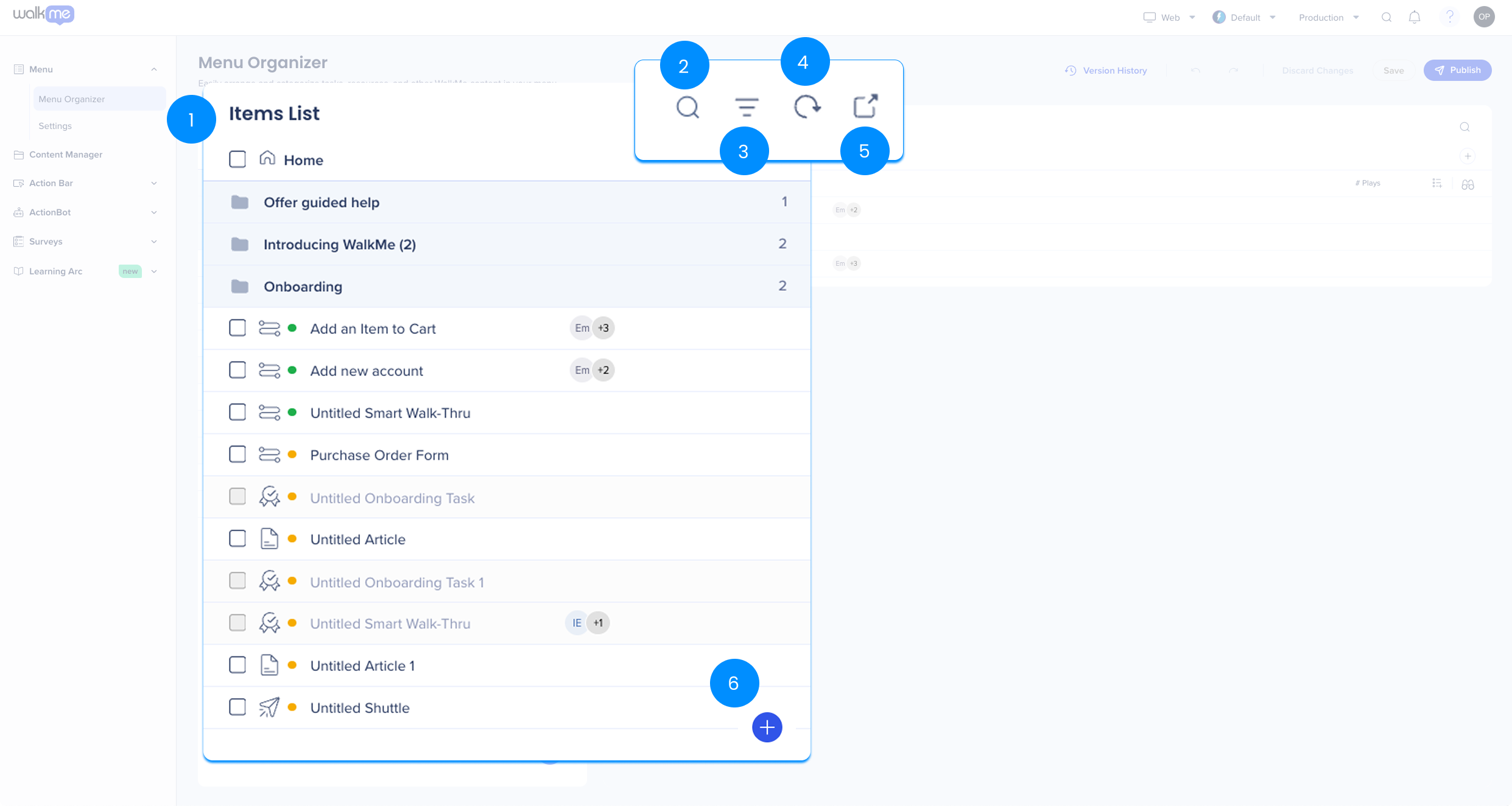 The WalkMe Menu Organizer is your workshop for building and managing your WalkMe Menu. The menu organizer displays all of the resources, onboarding tasks, and Smart Walk-Thrus that are in your editor.