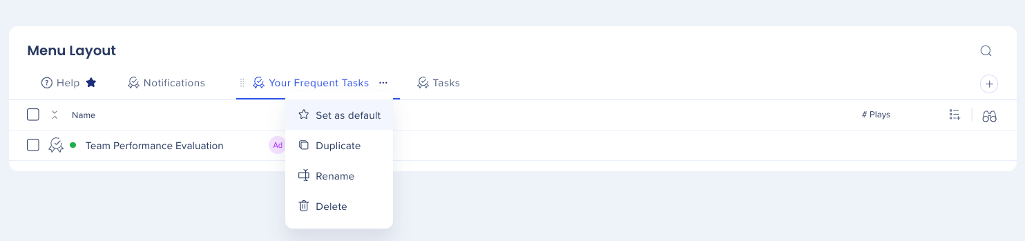For example, if you copied a tab called “Help”, the duplicated tab name will be “copy of Help”