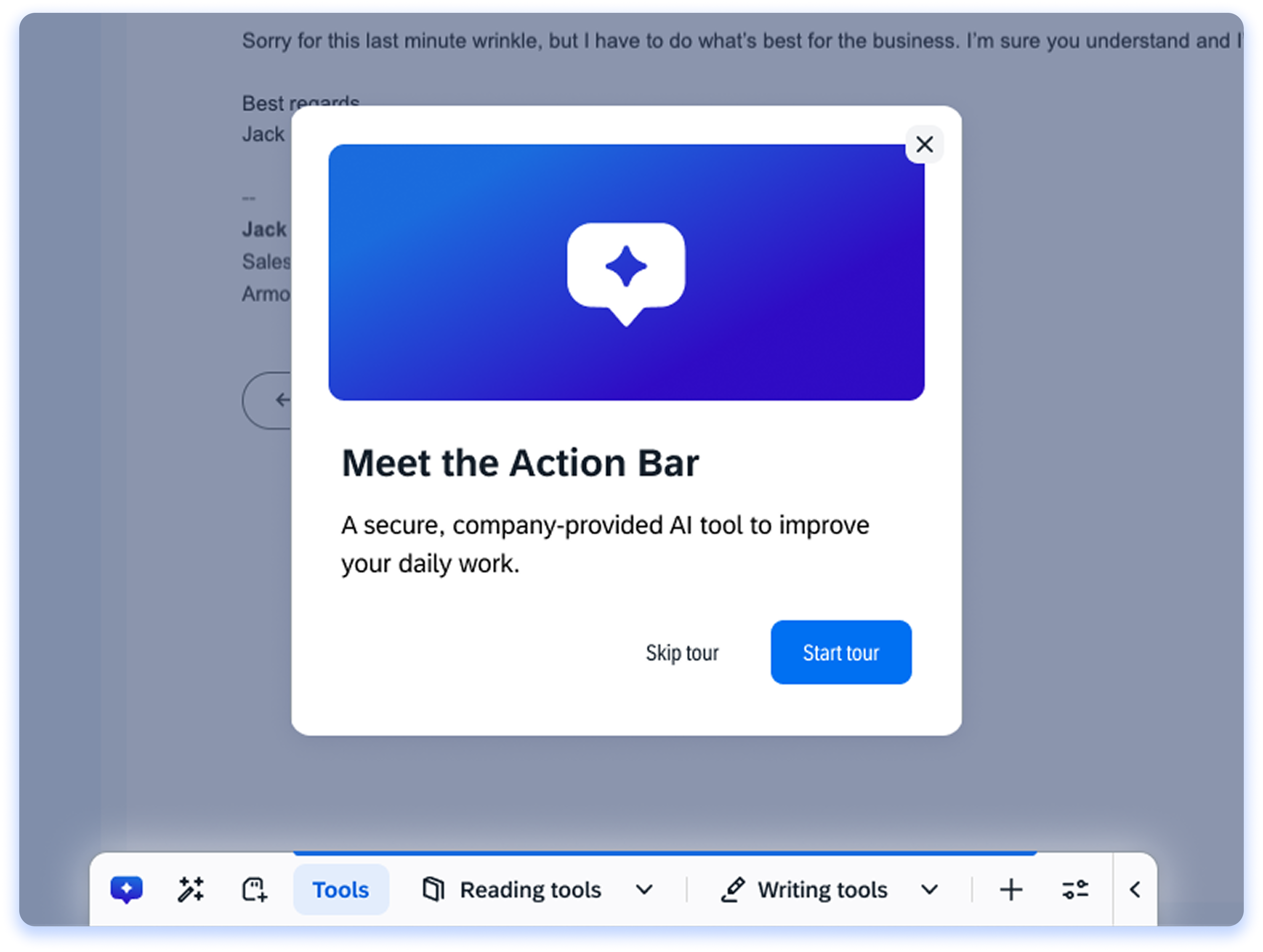 • A new onboarding flow replaces the previous experience, providing clearer guidance aligned with the redesigned Action Bar layout and functionality