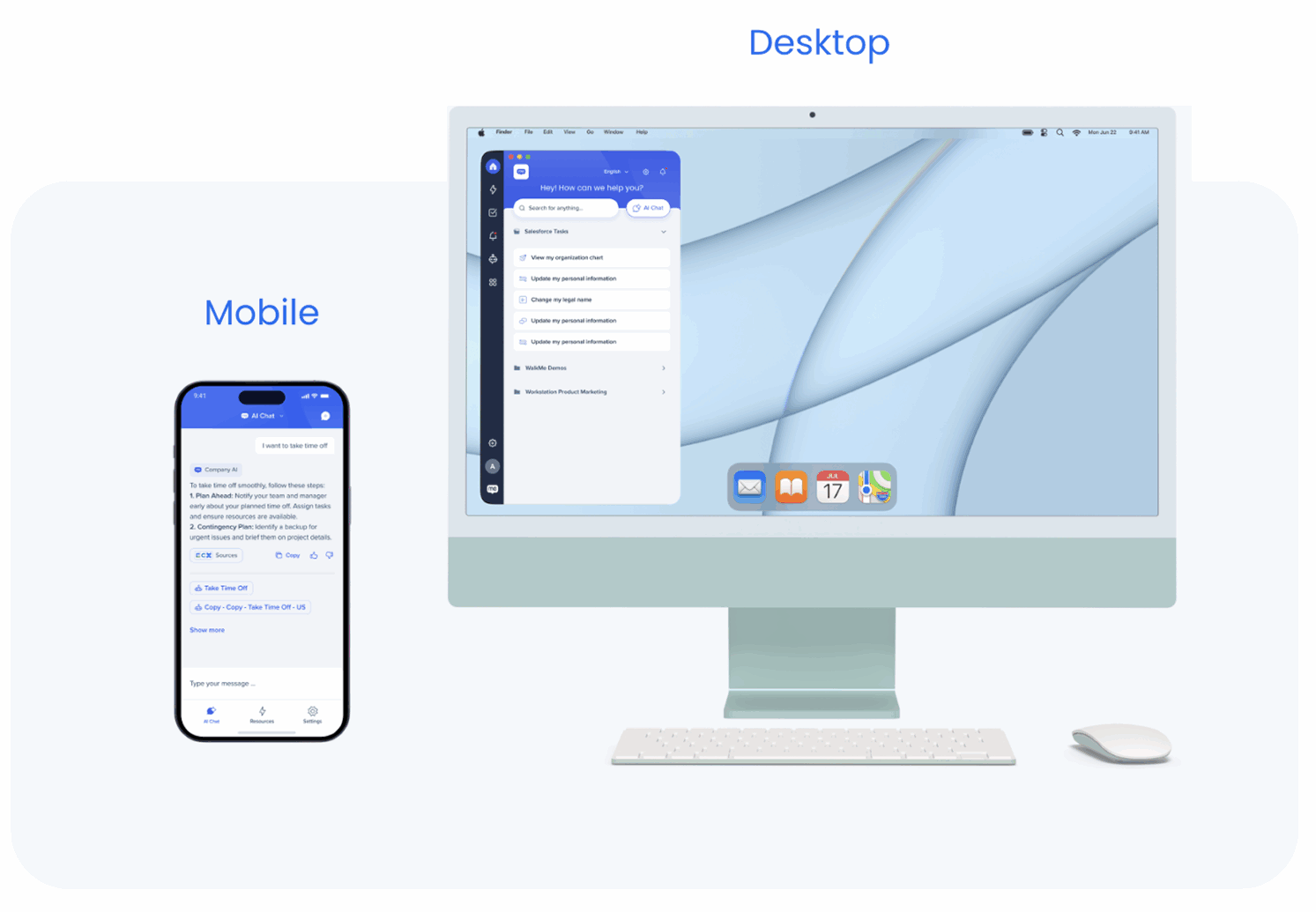 • Access company resources, knowledge, workflows, and digital guidance from one place